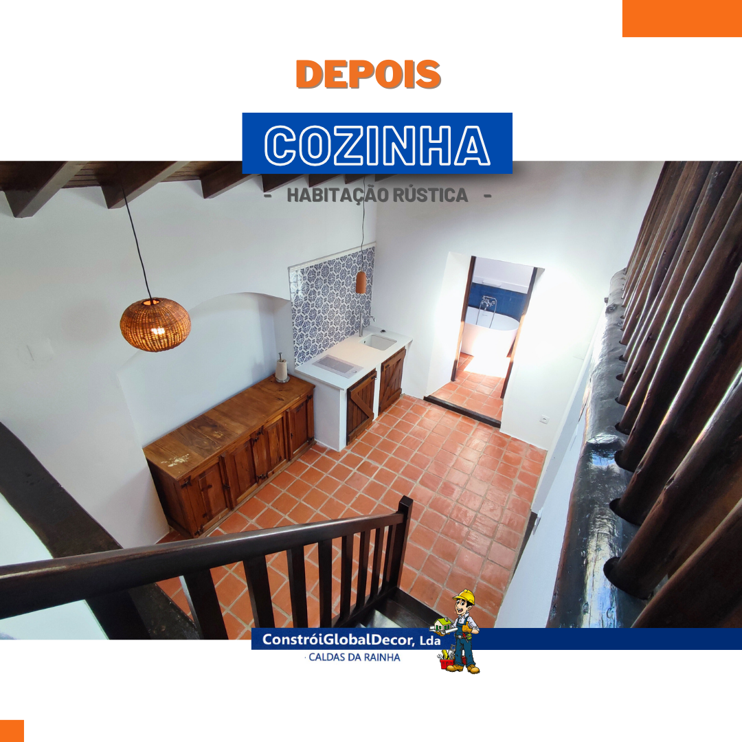 Esta cozinha foi totalmente remodelada no estilo rústico, exatamente ao gosto do cliente. O espaço foi cuidadosamente desenhado para incluir todos os elementos essenciais, como placa de fogão, lava-loiça, forno e termoacumulador, combinando funcionalidade com um charme tradicional. O resultado é uma cozinha acolhedora e prática que reflete a personalidade e preferências do cliente.